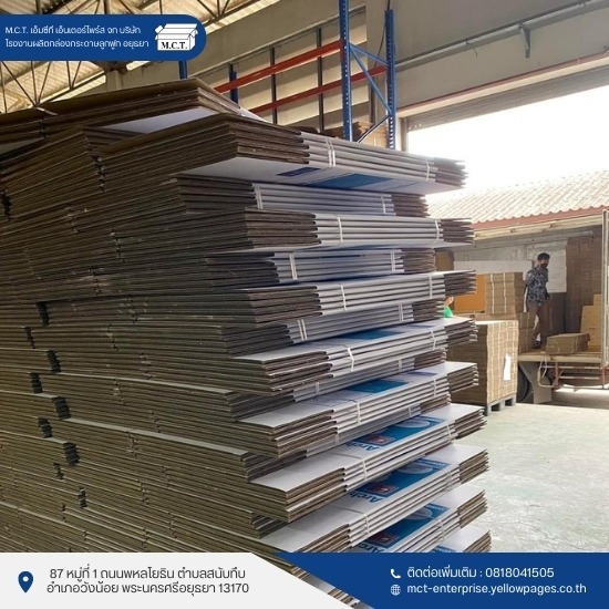 โรงงานผลิตกล่องกระดาษ อยุธยา โรงงานผู้ผลิตกล่องกระดาษลูกฟูก ราคาถูก พร้อมรับออเดอร์ สั่งทำกล่องกระดาษตามความต้องการ ไม่ว่าจะเป็นกล่องบรรจุภัณฑ์ กล่องหีบห่อ กล่องลังกระดาษลูกฟูก ผลิตกล่องลังกระดาษลูกฟูก, ผลิตพาเลทกระดาษ, ผลิตกล่องลูกฟูกอ๊อฟเซ็ท, ผลิตกล่องใส่เอกสาร, ผลิตกล่องใส่สินค้าเพื่อการส่งออก, ผลิต CORNER BAR กระดาษฉากเข้ามุม รวมถึงงานพิมพ์สกรีนโลโก้ ข้อความ ลงบนตัวกล่องของลูกค้า บริการที่รวดเร็วทุกด้าน ทั้งการให้คำปรึกษา การรับออเดอร์ ขั้นตอนการผลิต การจัดส่ง งาน ช่องทางการติดต่อ บริษัท เอ็ม.ซี.ที. เอ็นเตอร์ไพรส์ จำกัด ผู้ผลิตกล่องลัง กล่องกระดาษ กล่องพัสดุ กล่องสินค้า โทร 08-1804-1505 ที่อยู่โรงงาน 87 หมู่ที่ 1 ถนนพหลโยธิน ตำบลสนับทึบ อำเภอวังน้อย จังหวัดพระนครศรีอยุธยา 13170 Facebook : MCT ENTERPRISE กล่องกระดาษ
